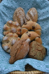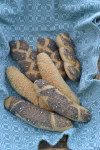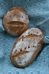 0,5 kg Bauernbrot aus Sauerteig, Weizenmehl, Roggenmehl und Sonnenblumenkerne, Salz, Germ und Brotgewürz